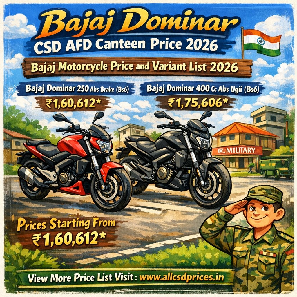 | Heading | Bajaj Dominar CSD Canteen Price 2026 |