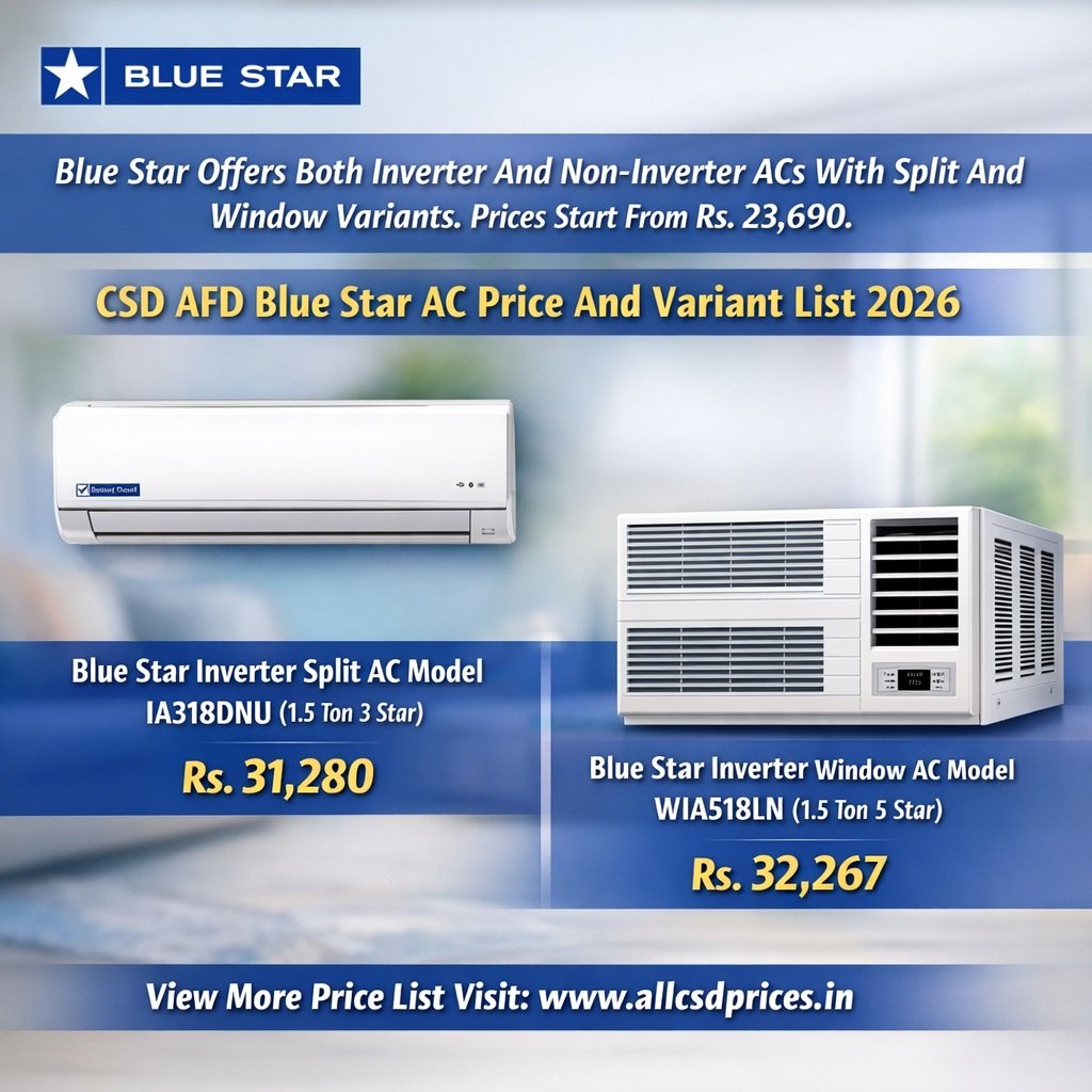 Blue Star AC CSD Price List 2026 Highlights