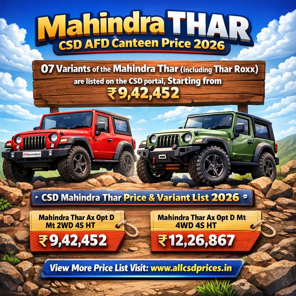 | Heading | Mahindra Thar CSD Canteen Price 2026 |