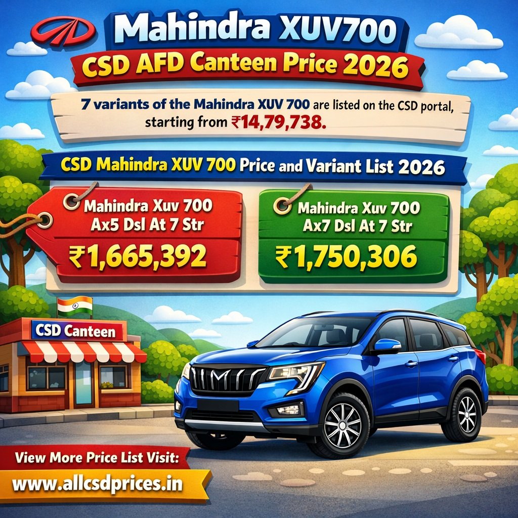 | Heading | Mahindra Xuv700 CSD Canteen Price 2026 |