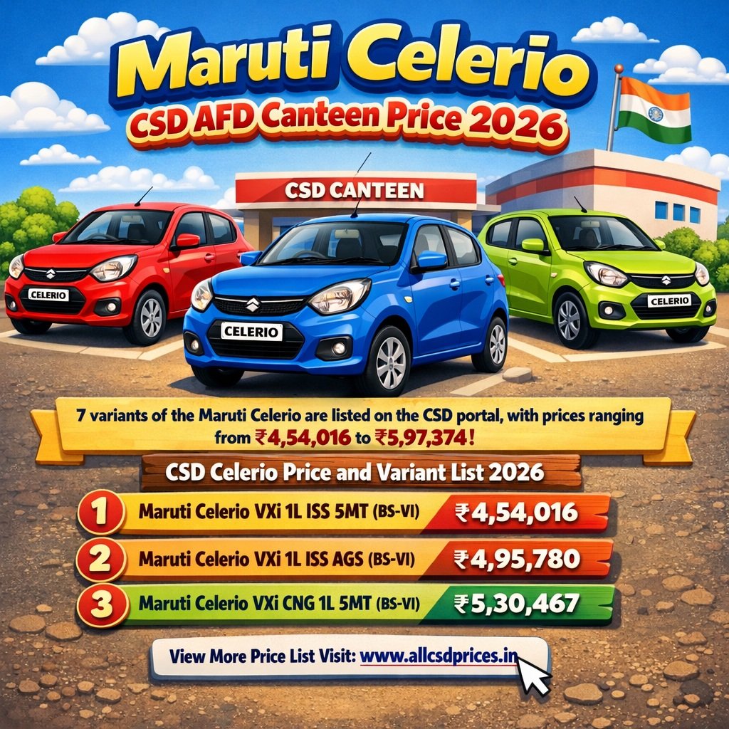 | Heading | Maruti Celerio CSD Canteen Price 2026 |
