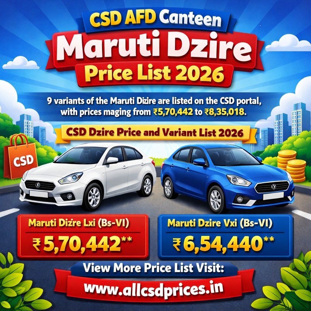 | Heading | Maruti Dzire CSD Canteen Price 2026 |