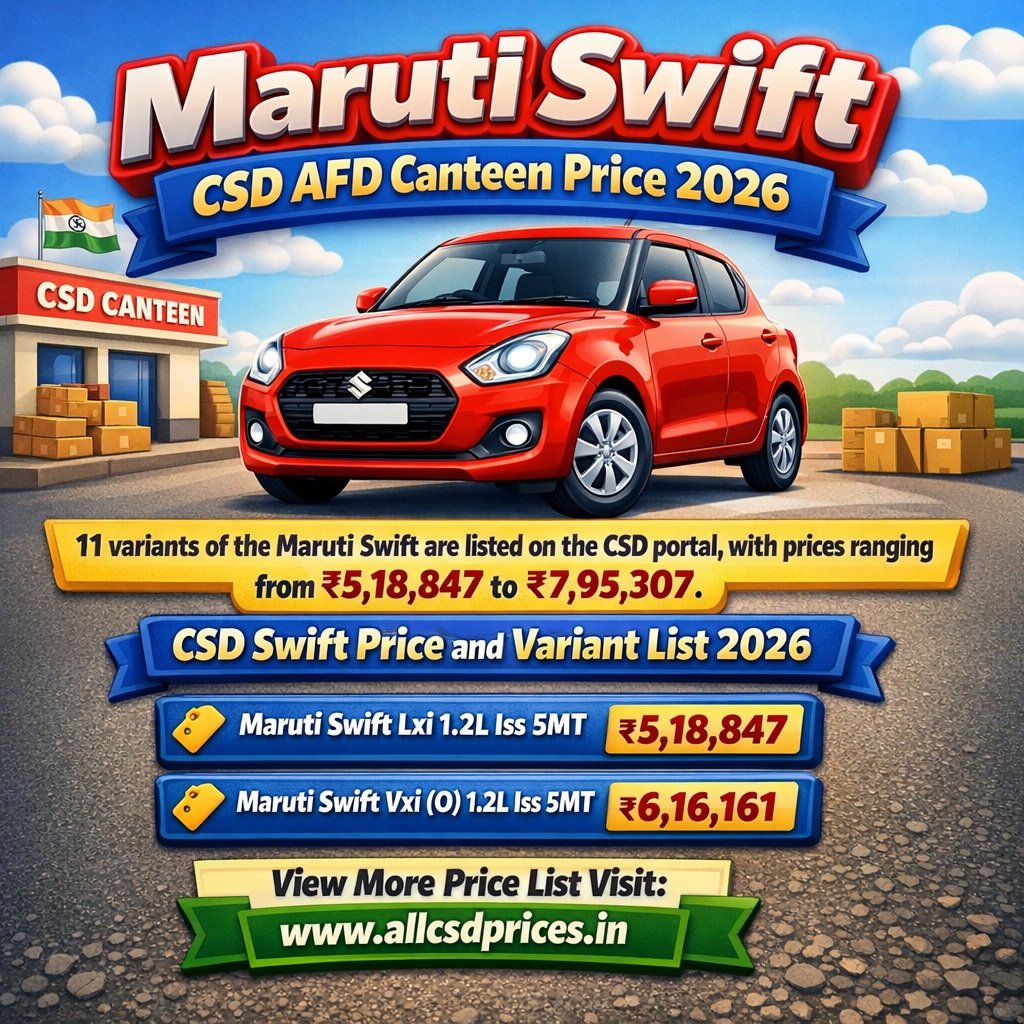| Heading | Maruti Swift CSD Canteen Price 2026 |
