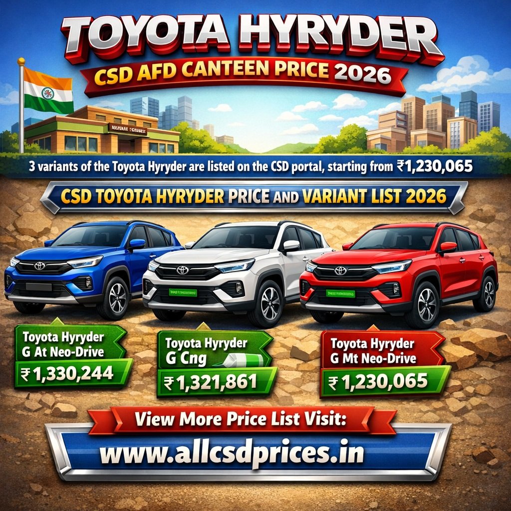 | Heading | Toyota Hyryder CSD Canteen Price 2026 |