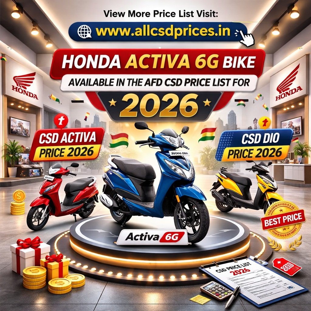 Check all variants of Honda Activa 6G Bike available in the AFD CSD Price List for 2026