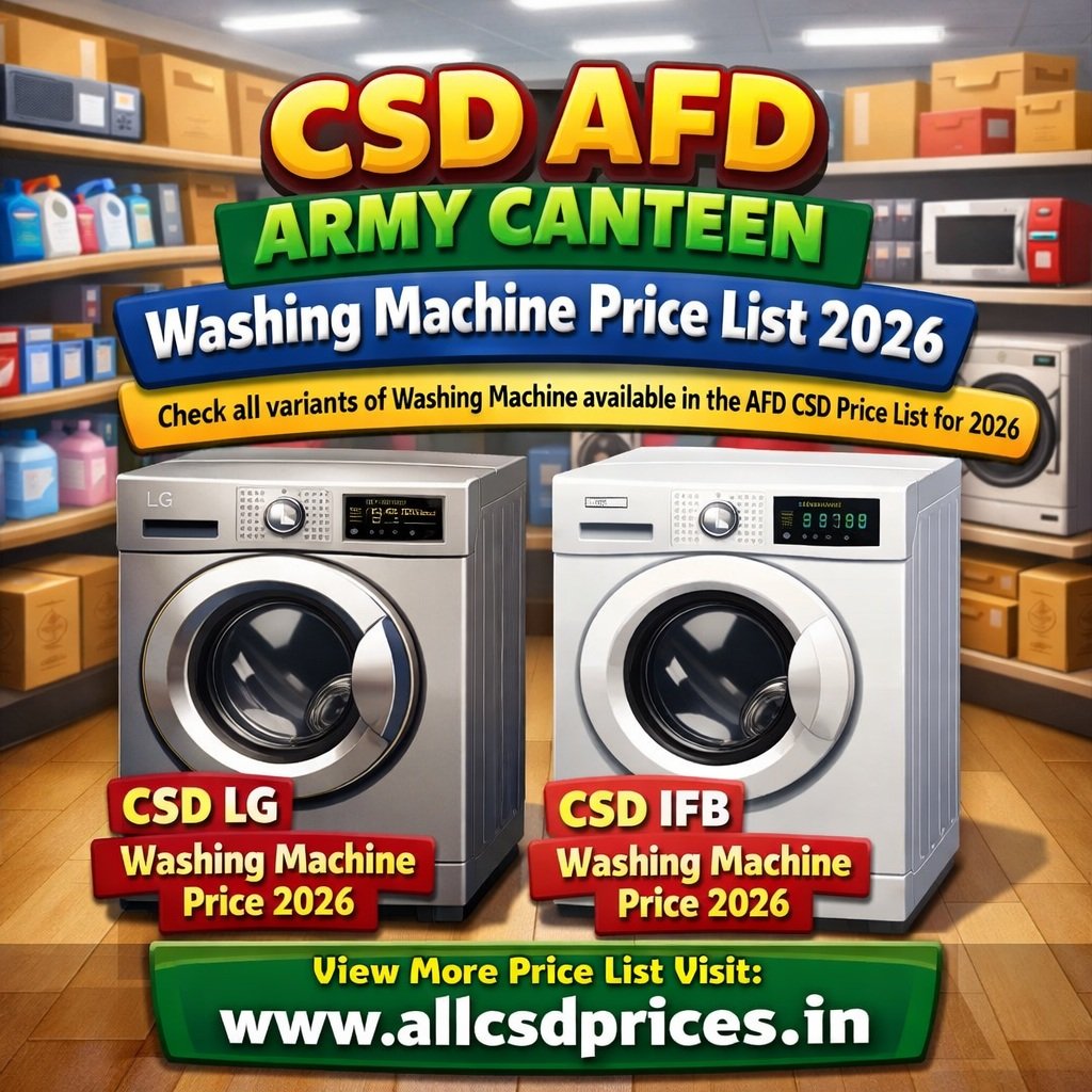Latest Price List of Washing Machine in CSD AFD Online Portal 2026